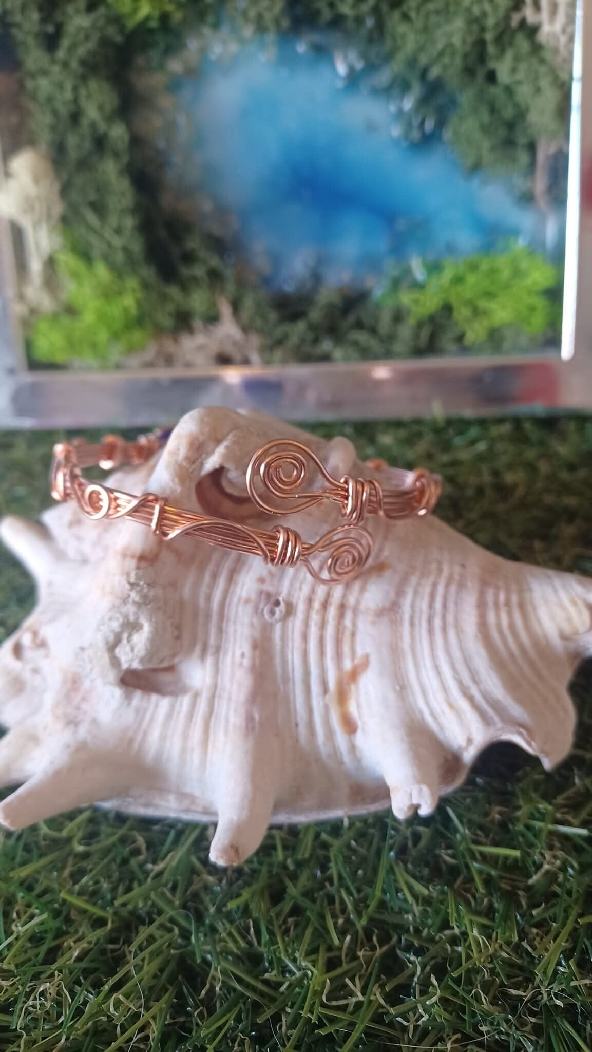 Handmade Copper & Sapphire Adjustable Bangle